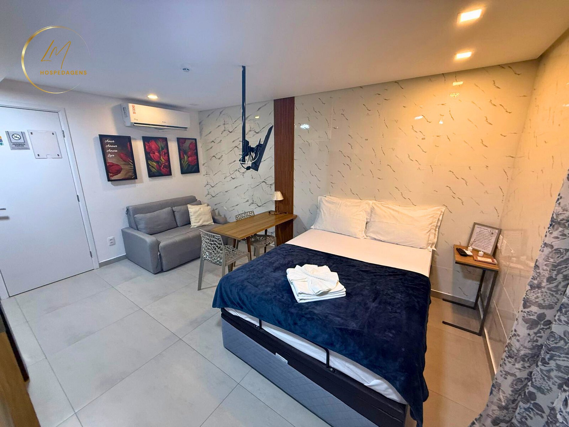 Nós, da LM Hospedagens, informamos que não é possível flexibilizar os horários de check-in e check-out em nossas unidades habitacionais. Para cumprir todas as normas de higienização e limpeza, e oferecer um serviço de qualidade, é necessário manter os seguintes horários: - Check-in a partir das 14 horas; - Check-out até as 12 horas. Observação: caso ultrapasse o horário, será cobrado 50% do valor da diária; - É proibida a hospedagem de mais de 04 pessoas no quarto, sujeito a multa no valor de 50% do total da hospedagem; - Proibido o uso de fogões elétricos ou qualquer outro tipo similar dentro do apartamento; - Visitantes não são permitidos, sujeito a multa no valor de uma diária em caso de descumprimento das normas; - Por restrições do condomínio, não são permitidos animais de estimação; - Estacionamento rotativo, sujeito a disponibilidade; - Hospedagem de Menores: De acordo com o artigo 250 do Estatuto da Criança e do Adolescente, e em conformidade com a orientação da promotoria da infância e da juventude, somente hospedaremos menores acompanhados dos pais e portando certidão de nascimento ou de responsáveis legais com documento de autorização dos pais.