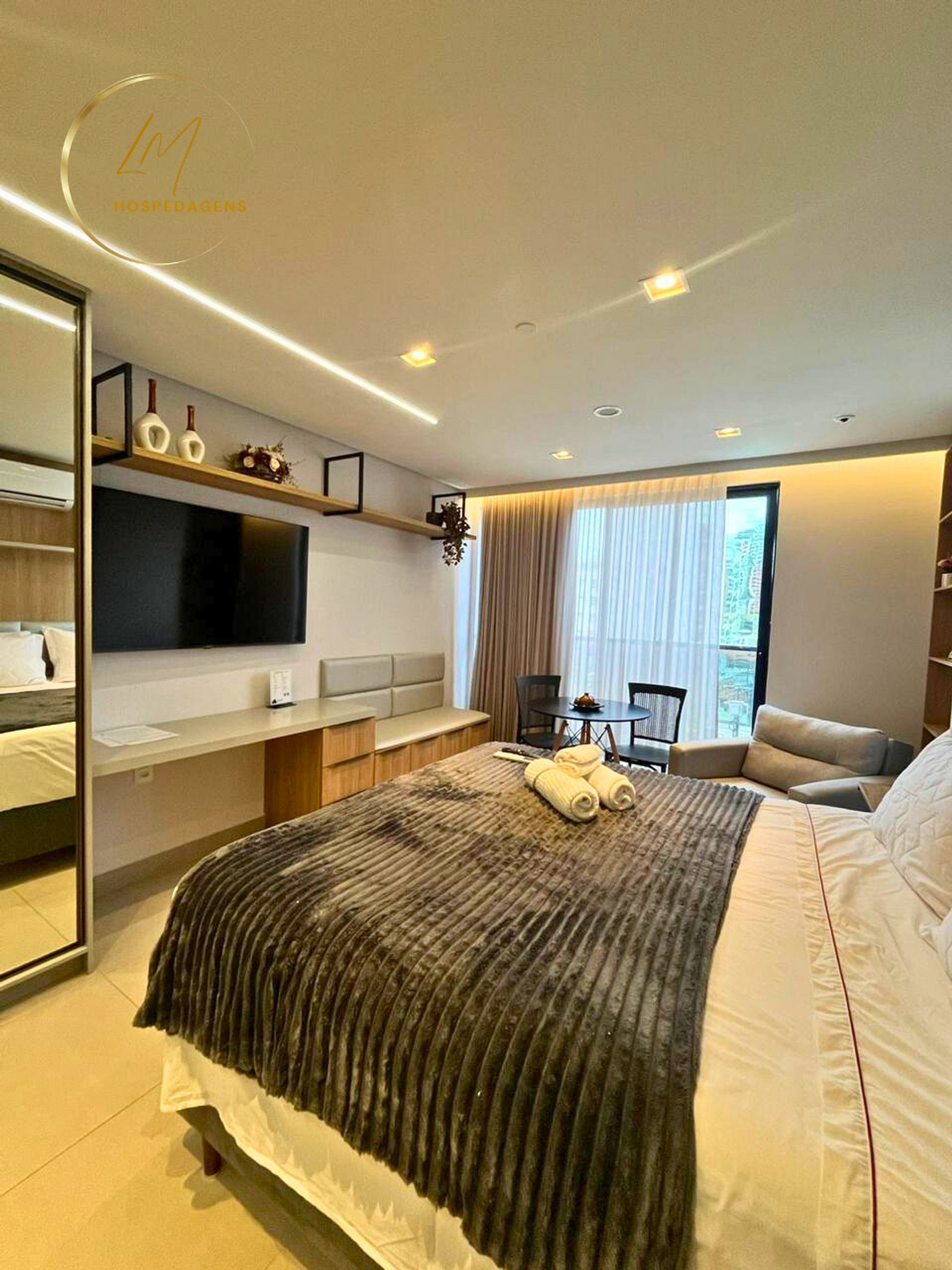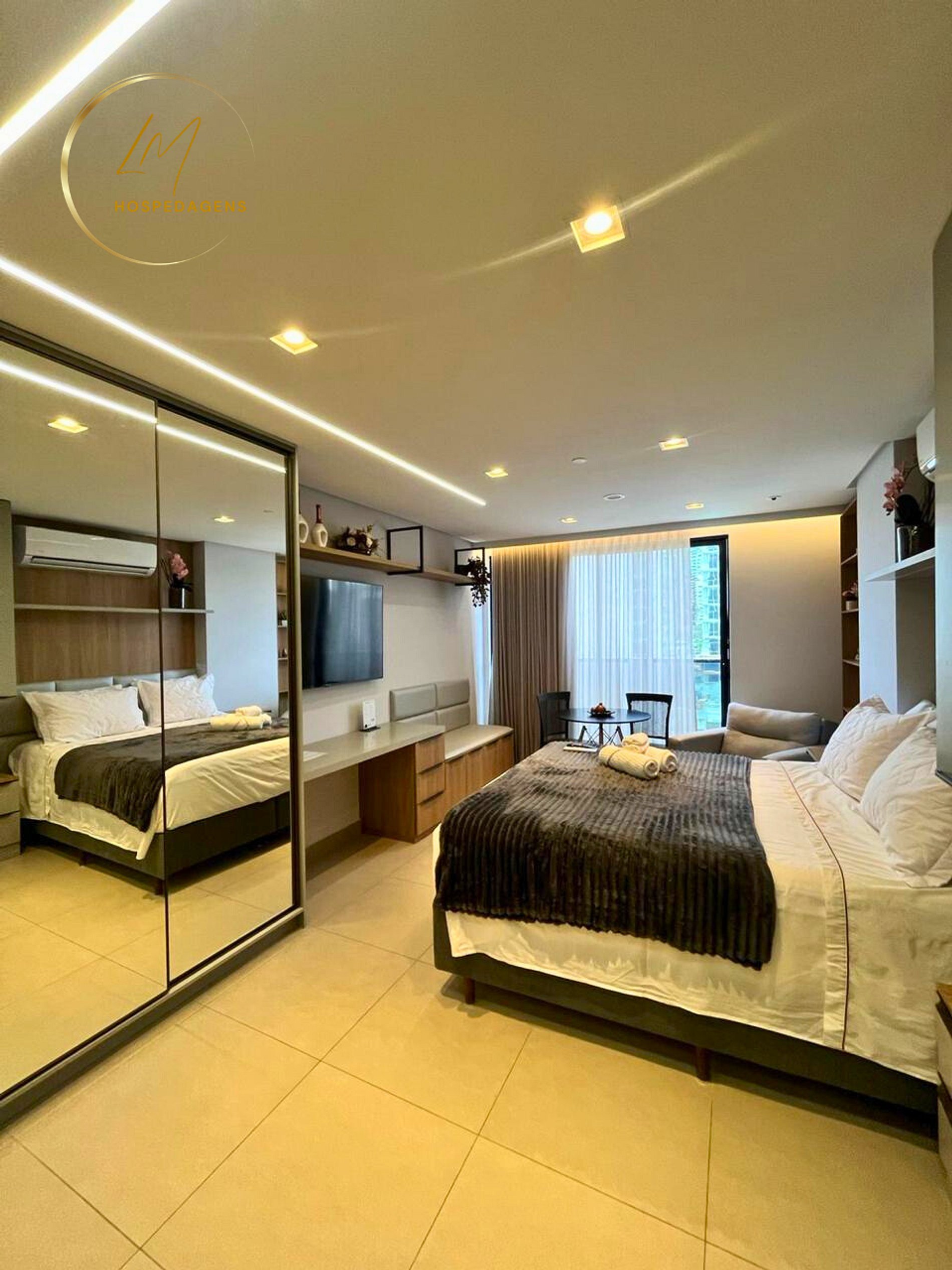 Nós, da LM Hospedagens, informamos que não é possível flexibilizar os horários de check-in e check-out em nossas unidades habitacionais. Para cumprir todas as normas de higienização e limpeza, e oferecer um serviço de qualidade, é necessário manter os seguintes horários: - Check-in a partir das 14 horas; - Check-out até as 12 horas. Observação: caso ultrapasse o horário, será cobrado 50% do valor da diária; - É proibida a hospedagem de mais de 03 pessoas no quarto, sujeito a multa no valor de 50% do total da hospedagem; - Visitantes não são permitidos, sujeito a multa no valor de uma diária em caso de descumprimento das normas; - Por restrições do condomínio, são permitidos animais de estimação mediante a consulta e taxa; - Estacionamento rotativo, sujeito a disponibilidade; - Hospedagem de Menores: De acordo com o artigo 250 do Estatuto da Criança e do Adolescente, e em conformidade com a orientação da promotoria da infância e da juventude, somente hospedaremos menores acompanhados dos pais e portando certidão de nascimento ou de responsáveis legais com documento de autorização dos pais.